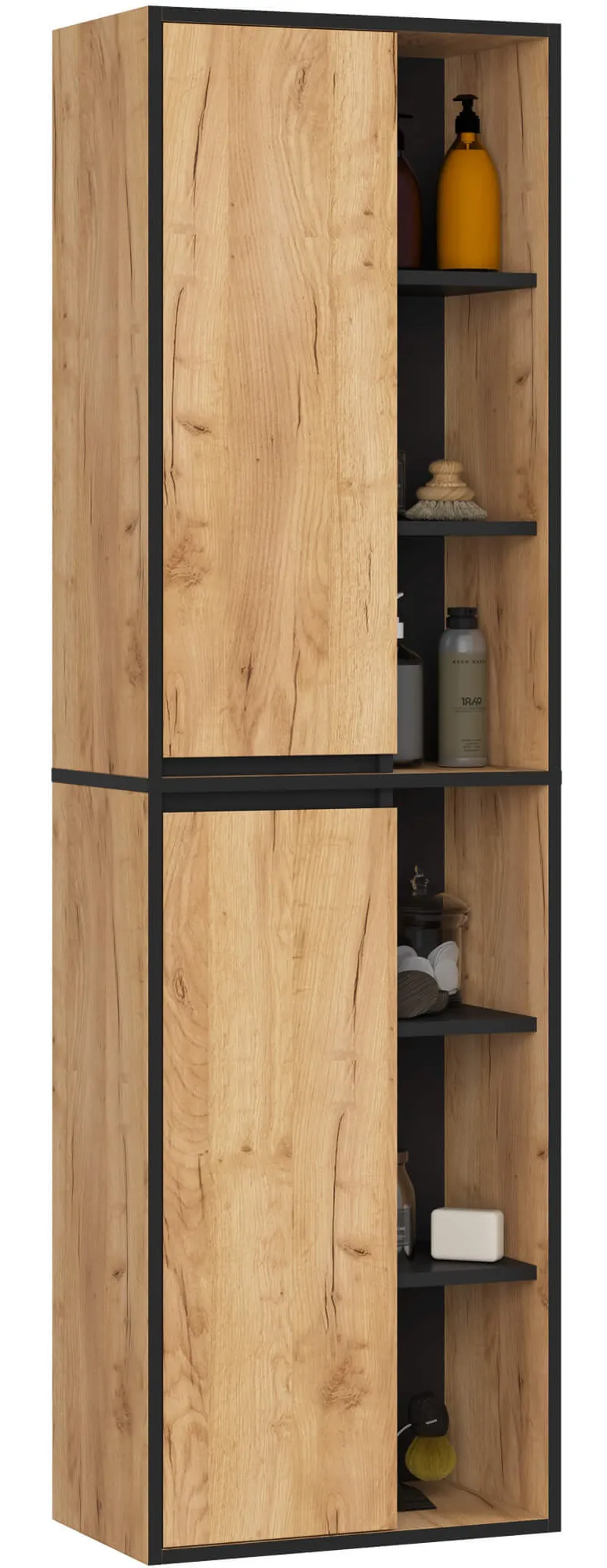 • Maksymalne wykorzystanie przestrzeni – pojemne wnętrza pomieszczą kosmetyki, środki czystości oraz akcesoria łazienkowe, ułatwiając utrzymanie porządku.