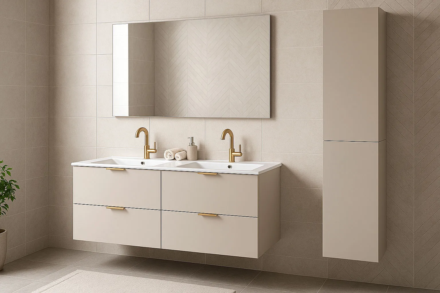 Kompletny zestaw z umywalkami to super wygoda. Meble dobrze wykonane, kolor pasuje do nowoczesnej łazienki. Umywalki solidne. Całość bardzo funkcjonalna.