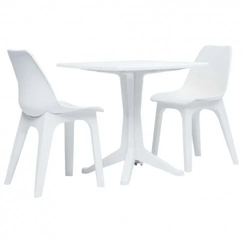 Nasz komplet to ukłon w stronę nowoczesnego minimalizmu. Składa się on z trzech części: poręcznego stolika, na którym zmieścisz poczęstunek dla swoich gości oraz dwóch wygodnych krzeseł. Całość wykonano z wysokiej jakości tworzywa polimerowego, który jest odporny na światło słoneczne, uszkodzenia oraz nacisk. Biały kolor kompletu podkreśli elegancki styl Twojego ogrodu, natomiast nowoczesny kształt dopasujesz do różnych jego aranżacji.