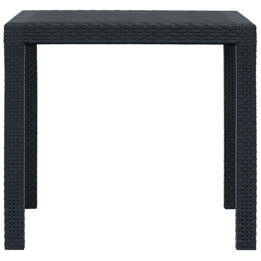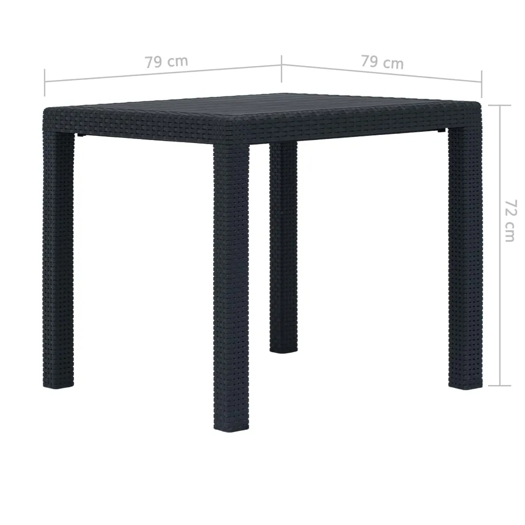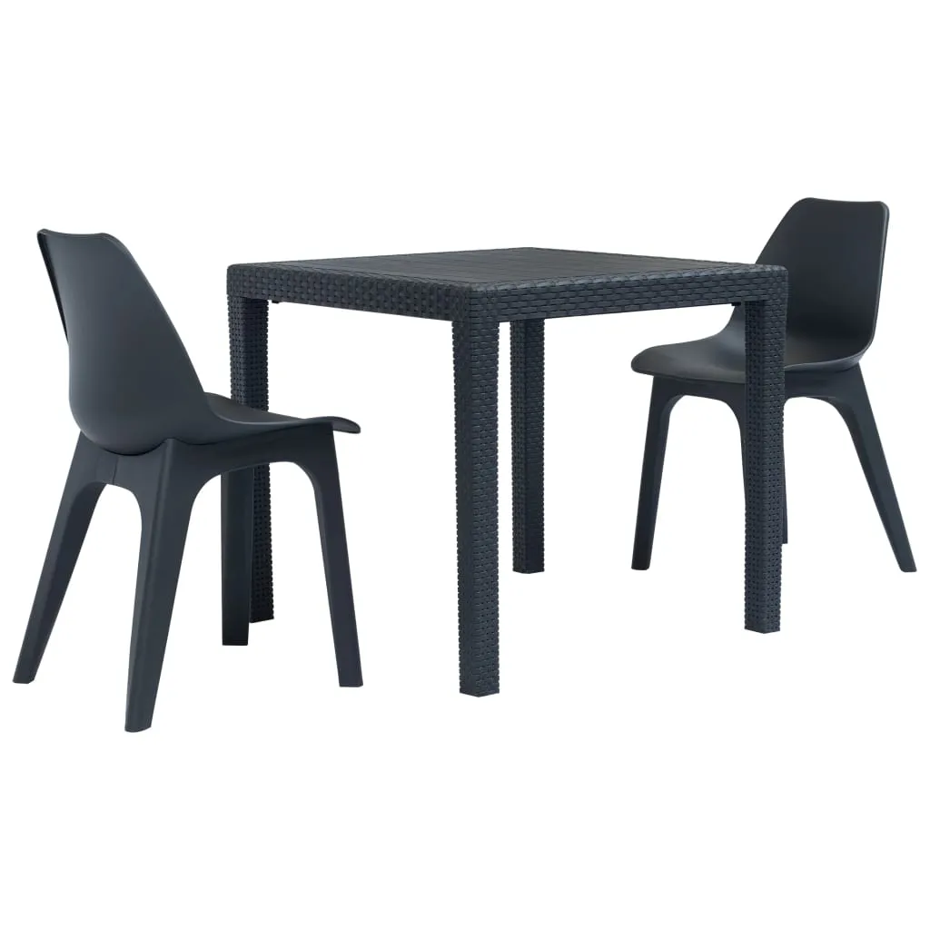 Stolik z zestawu Celma zdobiony jest ciekawymi wstawkami w stylu rattanowym – są nimi dekorowane nogi stołu oraz brzegi blatu. Centralna część blatu pozostała gładka, co znacząco ułatwia czyszczenie. Krzesła z kolei są gładkie, wygodnie wyprofilowane, o szeroko rozstawionych nogach, zapewniających stabilną pozycję. Ten trzyczęściowy zestaw meblowy do ogrodu wykonano w kolorze antracytu. Dzięki temu jest to wyjątkowo elegancki komplet, który podniesie walory wizualne każdej przestrzeni ogrodowej. Ciemny antracyt świetnie komponuje się z rozmaitymi kolorami, zatem możesz dowolnie eksperymentować z dodatkami i dekoracjami, umieszczanymi na stole czy krzesłach. Dodaj obrus i wygodne poduszki siedziskowe, a wykreujesz wyjątkowo przytulną aranżację w swoim ogrodzie.