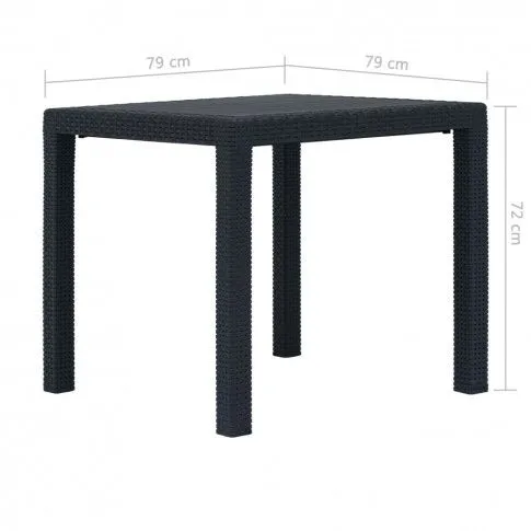 - Wymiary stolika: długość – 79 cm, głębokość – 79 cm, wysokość – 72 cm.
