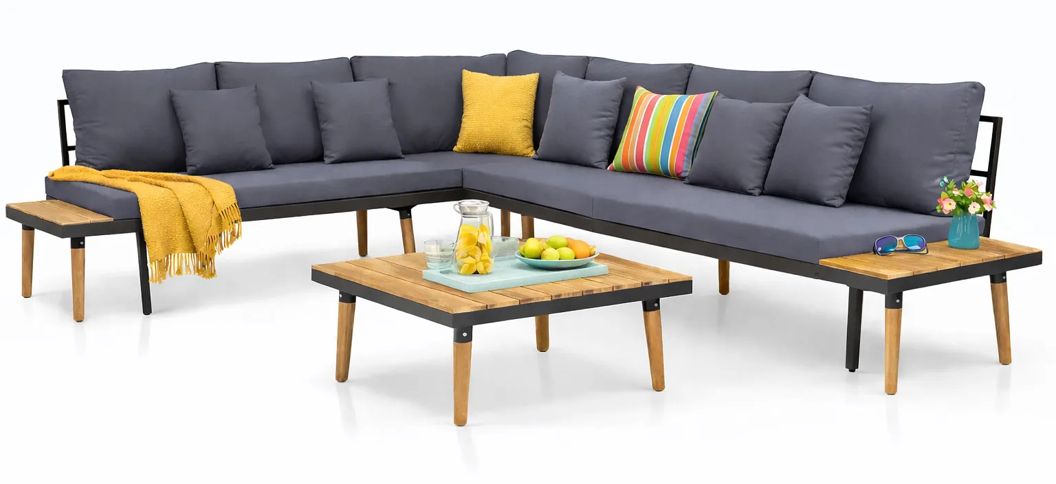 Super zestaw do ogordu. Profesjonalne wykonanie. Bardzo ładny kolor. Uniwersalny wpadający w oko. Materiał trwały i łatwy do czyszczenia. Do tego bardzo wygodny. Posiada poduszki, o które mozna się oprzeć. Zakup udany. Do tego trafiłam na bezpłatną dostawę. Polecam.