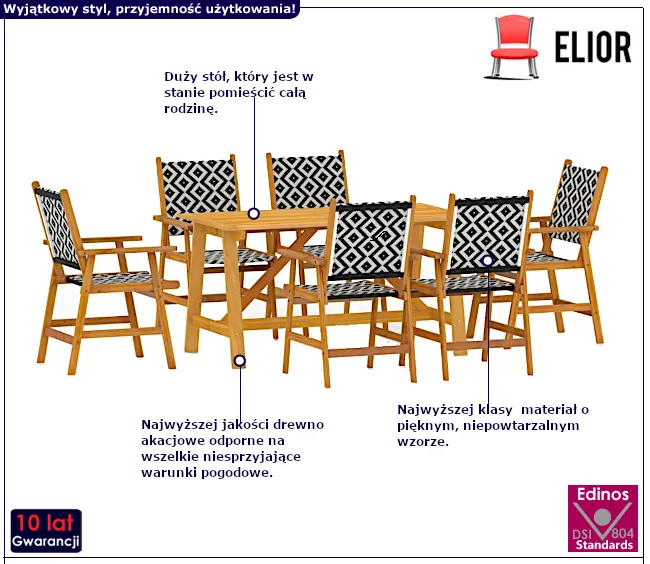 • solidna konstrukcja i staranne wykonanie zapewniają, że zestaw ogrodowy będzie służył przez wiele sezonów zachowując nienaganny wygląd, nawet przy zmiennych warunkach atmosferycznych.