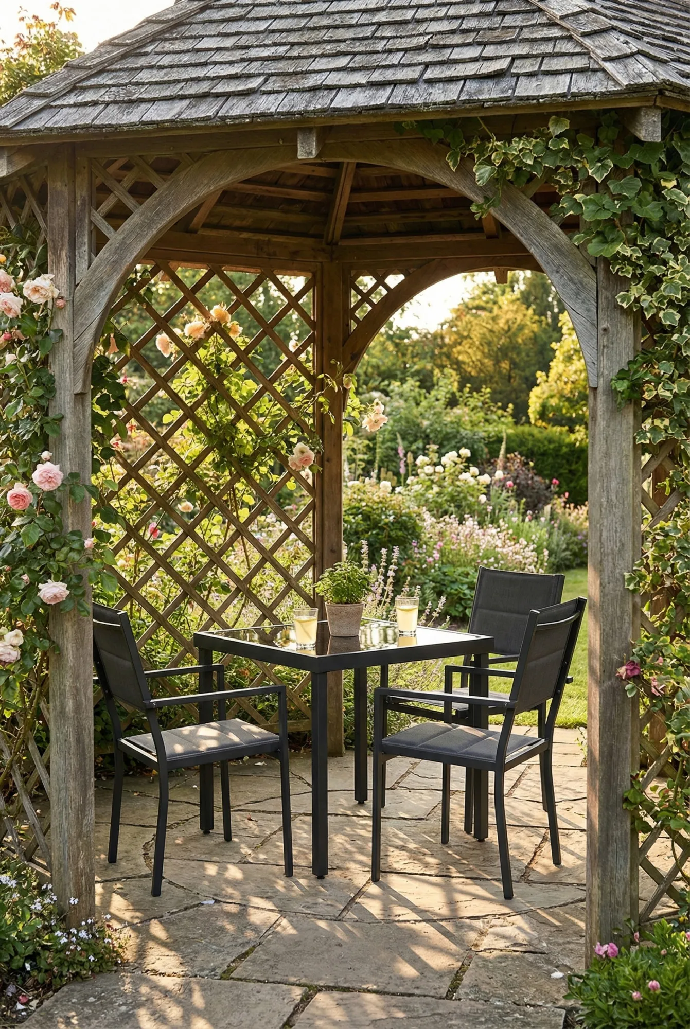 Aranżacja altany z meblami