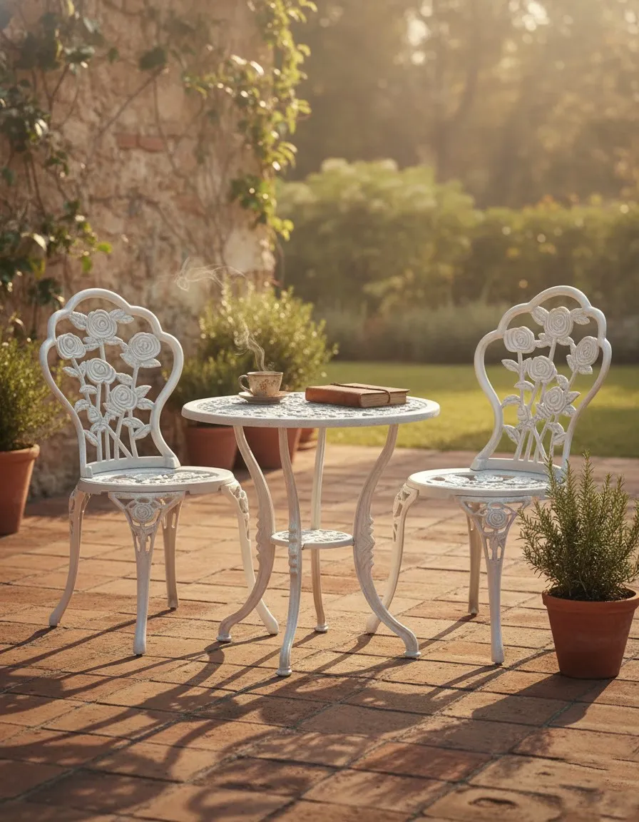 Gotowy na rewolucję w swoim ogrodzie? Zestaw krzeseł Safari to produkt, który odmieni Twoją przestrzeń na lepsze! Te wykonane z odlewanego aluminium meble stanowią wyraz wysokiego kunsztu: zarówno pod względem designu, jak i trwałości wykonania. Będą one intrygującą dekoracją, którą szczególnie docenią miłośnicy gustownej klasyki. Safari to bowiem udany i chwalony powrót do tradycyjnych form. Meble w stylu vintage wciąż cieszą się dużym zainteresowaniem, a to dlatego, że ich wzornictwo posiada nieprzemijającą estetykę. Także i ten zestaw uzupełni ogrodową przestrzeń w intrygującym stylu!