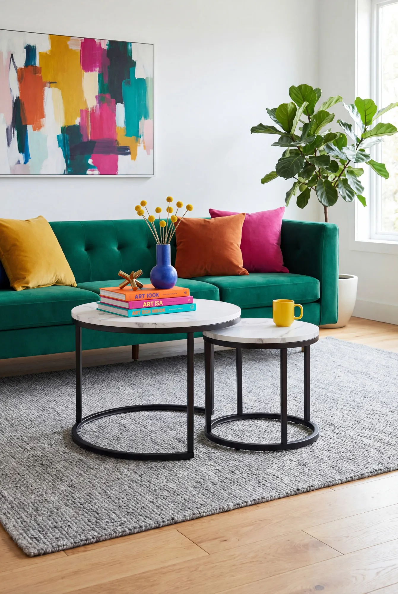 Dotyczy: Dwa okrągłe stoliki kawowe do salonu dąb złoty - Kendal