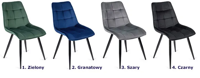 • krzesła tapicerowane tkanina welurową zapewniają komfort siedzenia i pięknie się prezentują