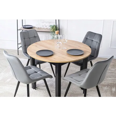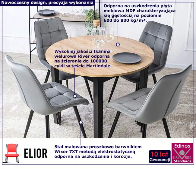 Zestaw okrągły stół i welurowe szare krzesła - Ninyra