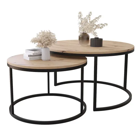 Zestaw 2 okrągłych stolików kawowych Averdiq 3X dąb craft złoty