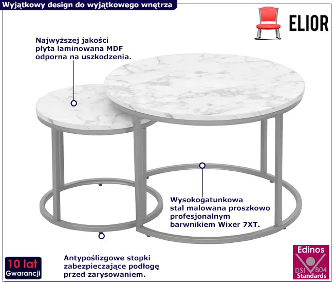 Dotyczy: Komplet okrągłych stolików kawowych na złotej podstawie - Kefes