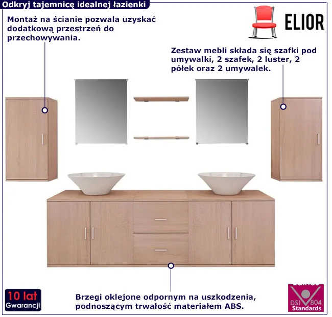 Dotyczy: Czarny 9 elementowy zestaw podwieszanych mebli łazienkowych - Nyos 3X