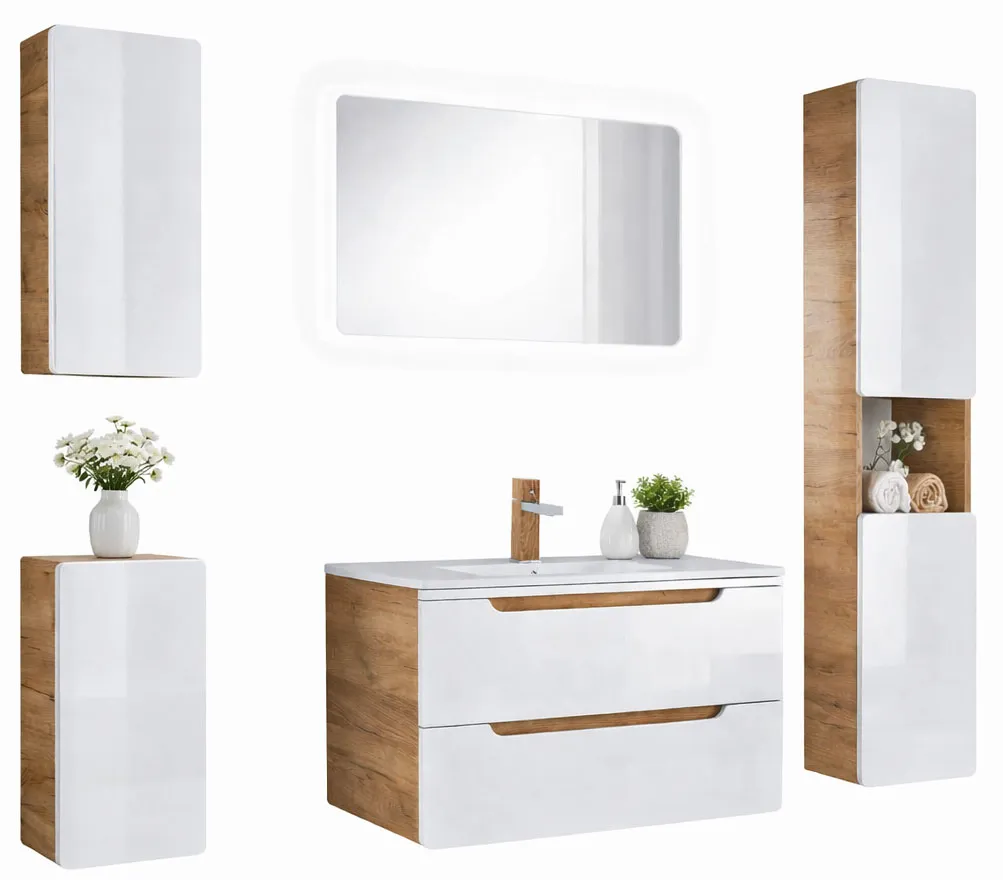 Zestaw nowoczesnych mebli podwieszanych do łazienki Borneo 80 cm