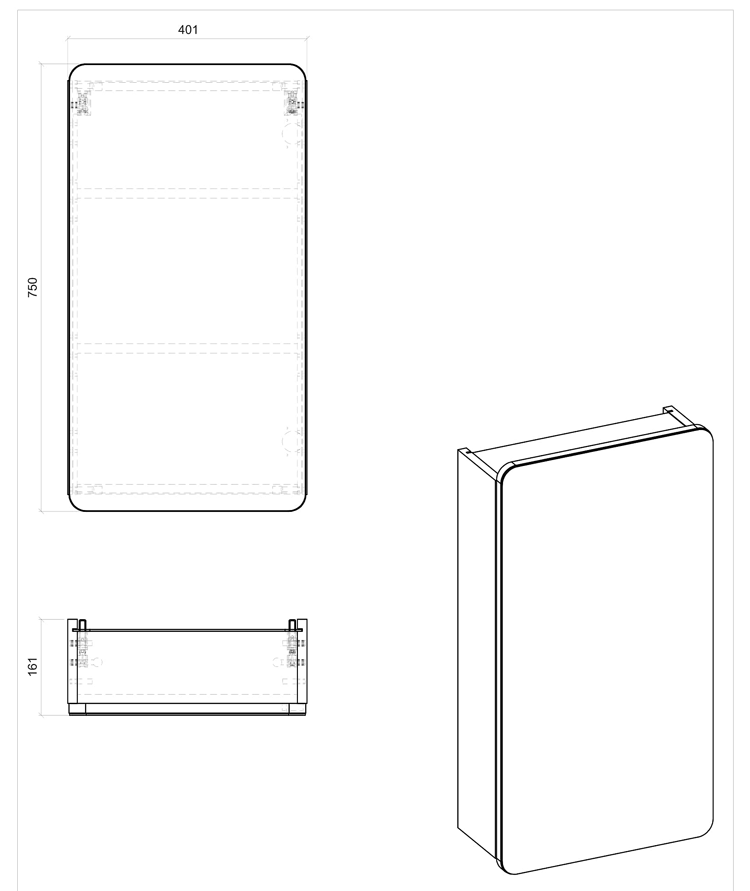 • Szafka z lustrem Borneo 13X: wysokość: 75 cm, szerokość: 60 cm, głębokość: 16 cm.