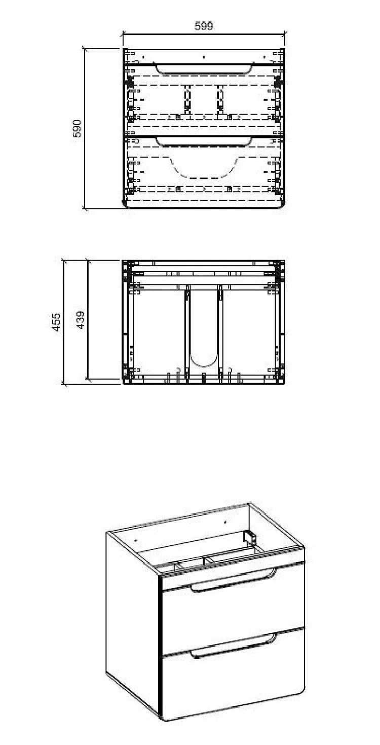 • Szafka pod umywalkę Borneo 6X: szerokość: 60 cm, głębokość: 46 cm, wysokość: 59 cm.