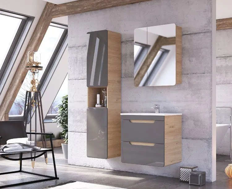 Zestaw podwieszanych mebli łazienkowych Zeftox 5Q - Szary połysk