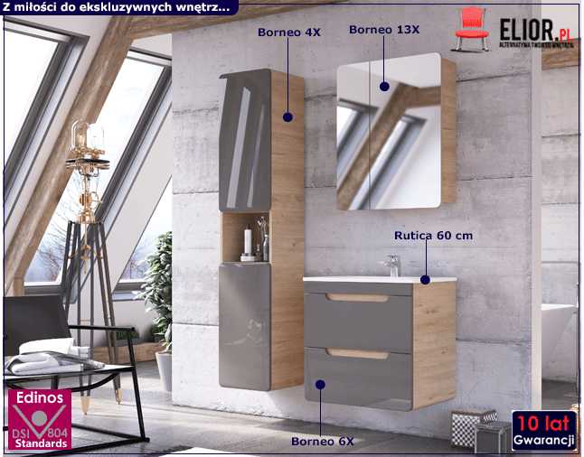 Myślisz o wymianie mebli łazienkowych na nowe? A może projektujesz właśnie łazienkę do nowego domu? Mamy dla Ciebie wspaniałą propozycję! Nowoczesna kolekcja podwieszanych mebli łazienkowych Borneo Szary od marki Elior to propozycja dla osób lubiących elegancję. Szlachetna kolorystyka połączona z lekką wizualnie formą idealnie wkomponuje się w aranżację wprowadzając przytulny, elegancki charakter. Postaw na Borneo i stwórz luksusową łazienkę w Twoim mieszkaniu! Komplet Zeftox 5Q Szary - nowy design w Twoim domu.