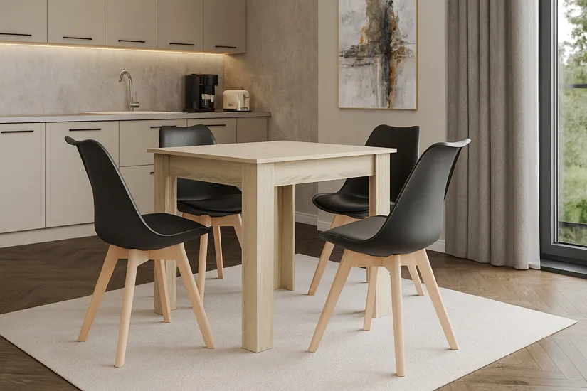Dotyczy: Kwadratowy stół biały + dąb sonoma z czarnymi krzesłami 4 szt - Camino 3X