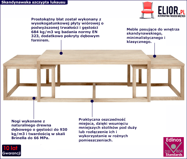- Modna kolorystyka: dąb naturalny. Kliknij w link i sprawdź także inne zestawy stolików w sklepie Edinos.pl. Stwórz swój praktyczny zestaw mebli.