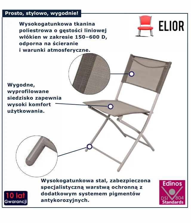 Krzesła Tidy marki Edinos Premium to więcej niż meble – to Twój bilet do świata wygody i stylowego odpoczynku na świeżym powietrzu za jedyne 258 zł. Dzięki nim każdy dzień może stać się małym świętem, a Twoja przestrzeń – oazą spokoju. Nie czekaj, aż sezon minie bezpowrotnie –  odkryj radość z życia w plenerze!