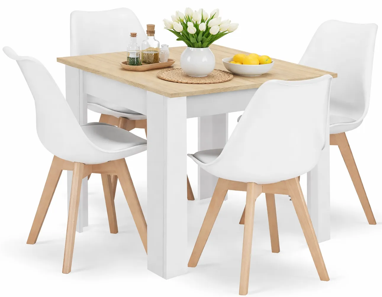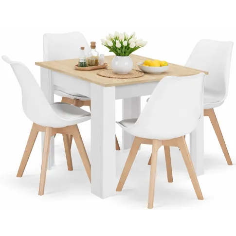Dotyczy: Kwadratowy stół biały + dąb sonoma z czarnymi krzesłami 4 szt - Camino 3X