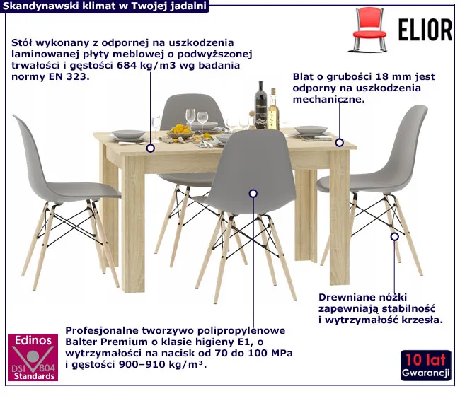 Dotyczy: Biały stół w zestawie z krzesłami do jadalni w stylu skandynawskim - Negro