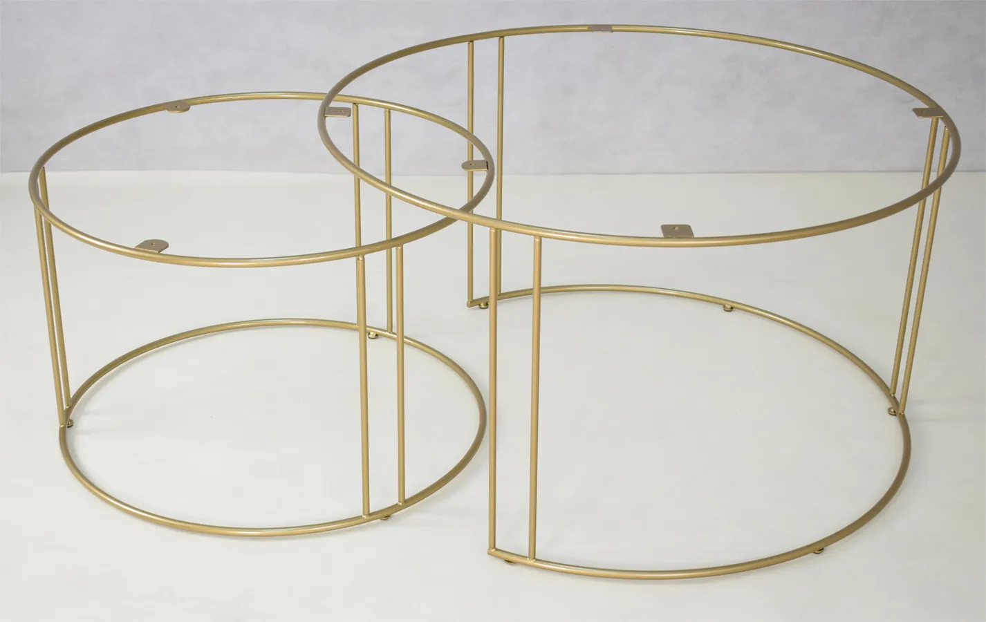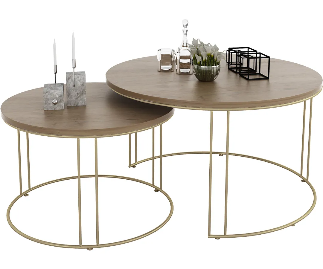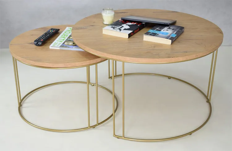 Kompaktowe rozwiązanie, które pomieści Twoje marzenia - Nasz zestaw dwóch stolików kawowych z drucianym stelażem: