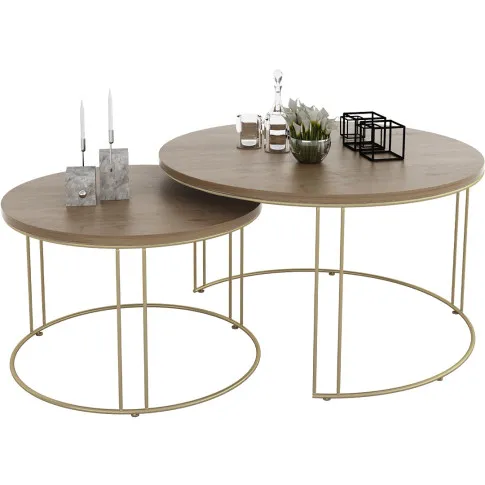 Komplet dwóch stolików kawowych Eksa 3X złoty+dąb lancelot