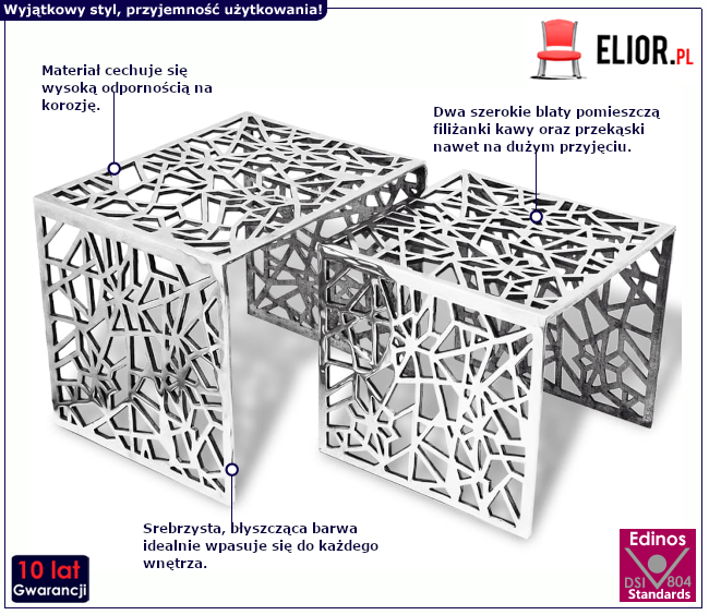 • Kolor: srebrny. Kliknij w link i sprawdź także inne zestawy stolików w sklepie Edinos.pl. Stwórz swój praktyczny zestaw mebli.