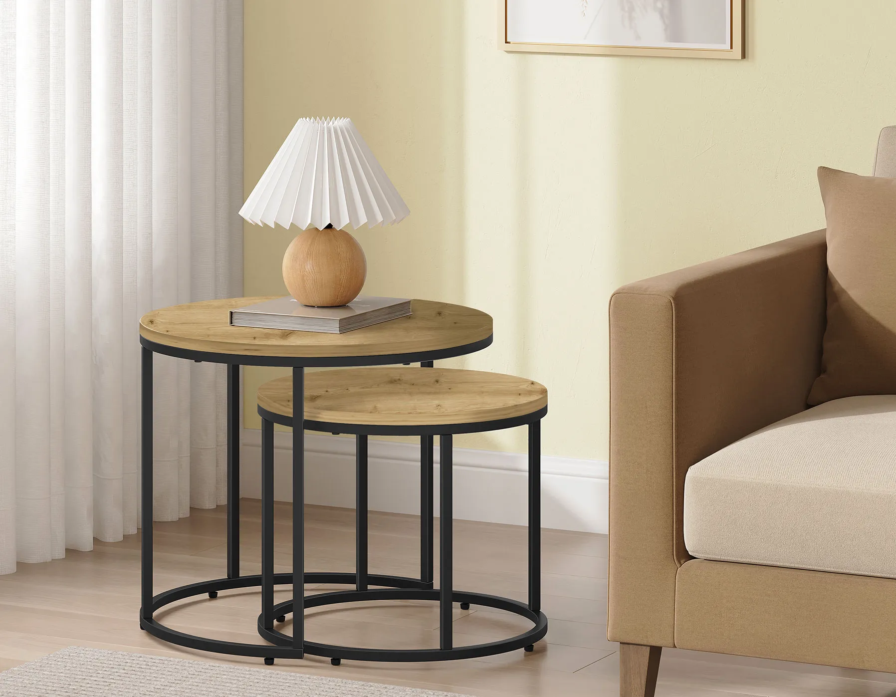 Dotyczy: Zestaw okragłych stolików kawowych 2w1 dąb sonoma - Philos 3X