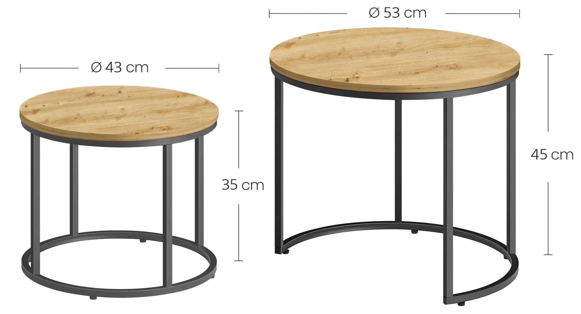 Dotyczy: Komplet 2 okrągłych stolików kawowych dąb - Philos 3X