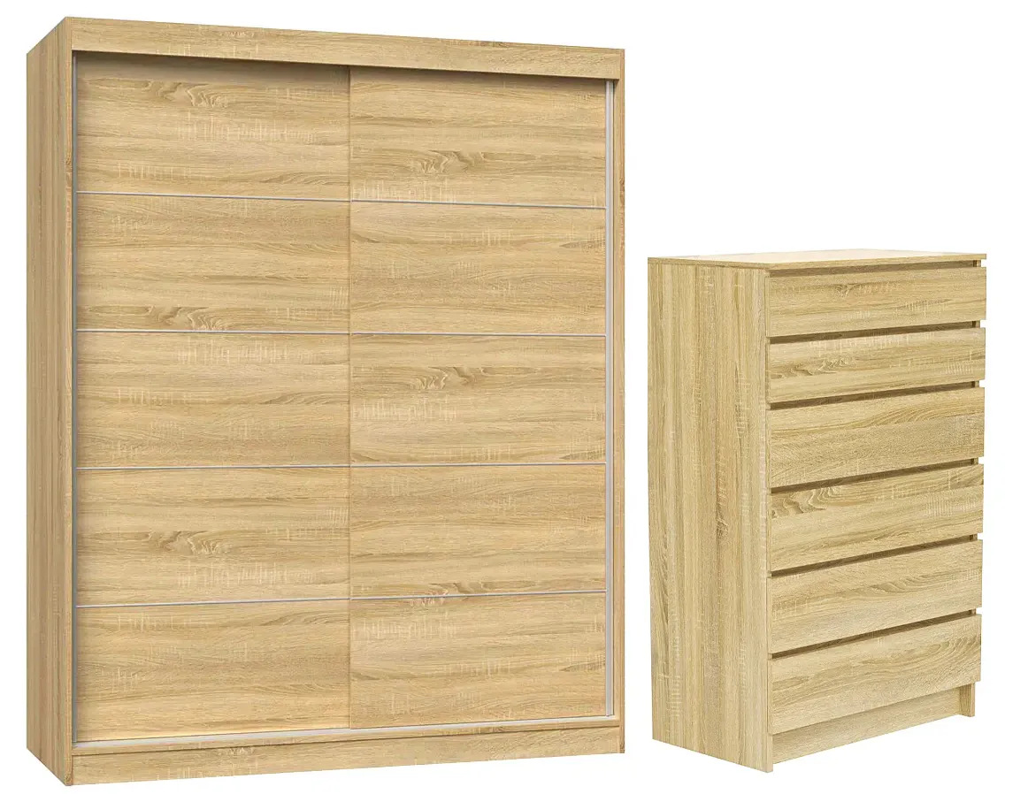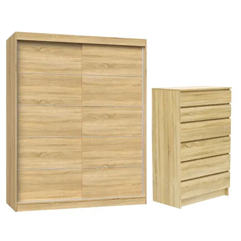 Zestaw szafa przesuwna i komoda dąb sonoma - Roleros