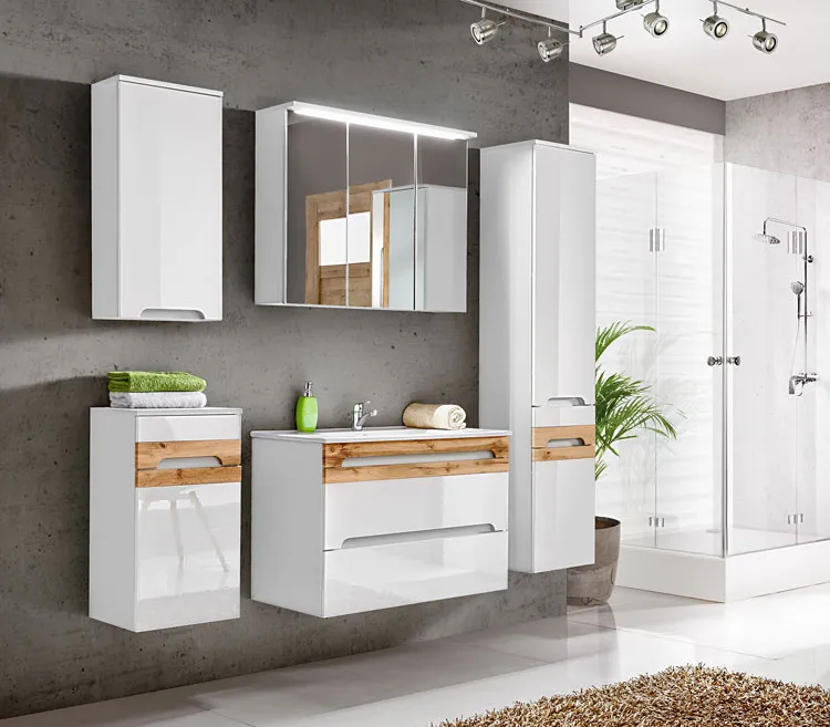Efektowne i efektywne mebelki odporna na wodę i wilgoć, pasują do jasnych łazienek w minimalistycznym akcencie.