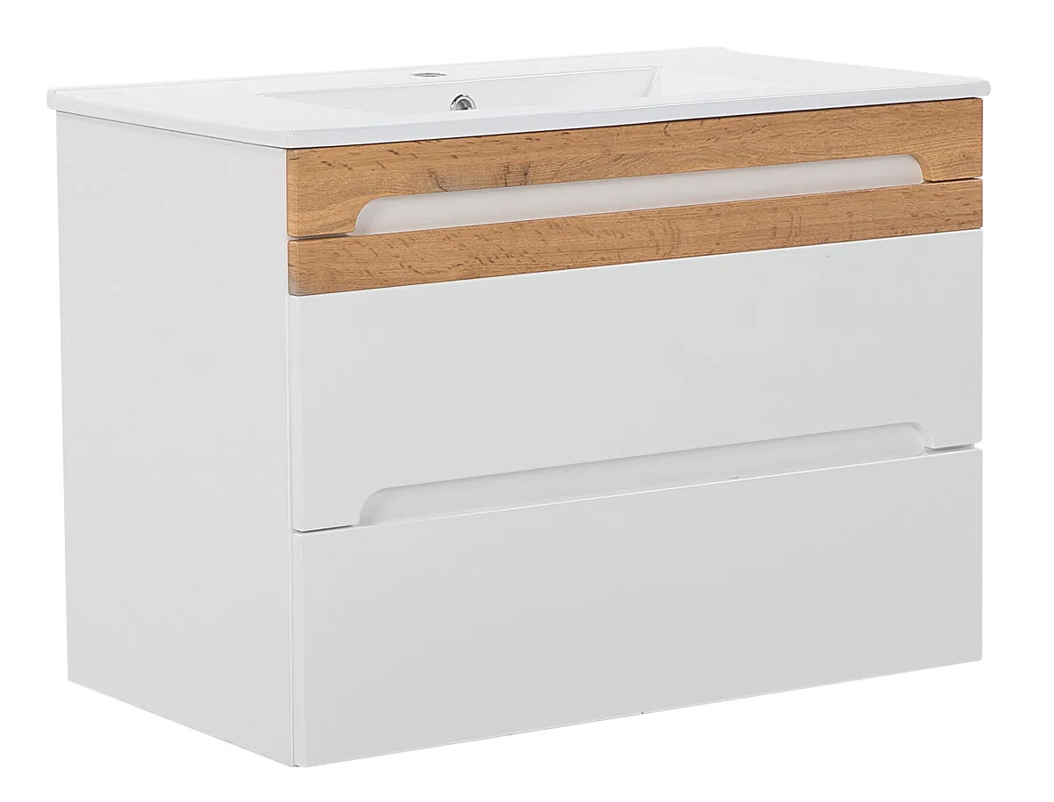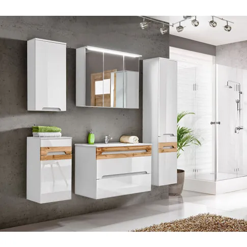 • Kolor: Biały połysk + Dąb Wotan. Sprawdź także inne szafki łazienkowe wiszące w sklepie Edinos.pl. Stwórz swój praktyczny zestaw mebli.