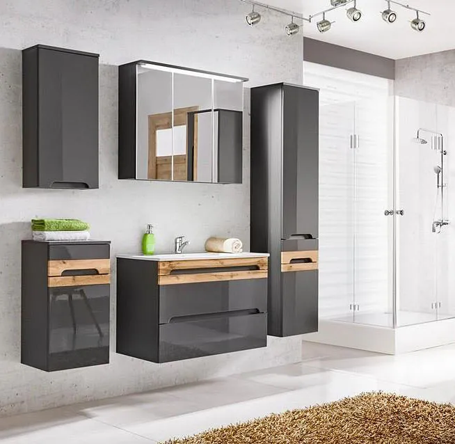 Komplet wiszących szafek łazienkowych Marbella Grafit połysk