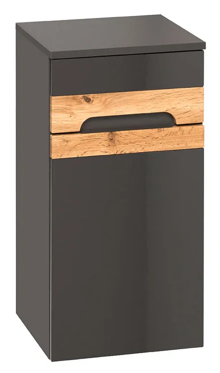 Grafit jest kolorem niezwykle eleganckim. Jest doskonałą bazą do stworzenia zdecydowanej, stylowej łazienki. Podkreśla wnętrze nadając mu charakteru i wyrafinowania. Od lat kochają go ikony mody, znani architekci, projektanci i wybitni twórcy designu. Dlaczego? Zdecydowanie za ponadczasowość i elegancję. Aby jednak zachować umiar i nie stworzyć przytłaczającego, ponurego wnętrza warto połączyć go z drewnem. Zdecydowany rysunek słojów oraz ciepła tonacja drewna doskonale łączy się z atrakcyjnością grafitu tworząc niesamowicie przyjemną całość. Kolekcja mebli łazienkowych Marbella Grafit to projekt stworzony dla miłośników nowoczesności oraz luksusowego charakteru. Połączenie lekkiej wizualnie formy, szlachetnego odcieniu grafitu oraz drewnianych akcentów sprawia, że meble te są doskonałą bazą do stworzenia wyjątkowej przestrzeni kąpielowej. Marbella charakteryzuje się także perfekcyjnym wykończeniem. Zamiast klasycznych wystających uchwytów zastosowano delikatne frezy nadające całości plastycznych kształtów. Fronty mebli wykonane zostały w połysku, co sprawia że całość nabrała świeżego, nowoczesnego charakteru. Dodatkowo meble te wyposażone zostały w profesjonalny system cichego domykania - wystarczy lekko pchnąć front, a ten domknie się miękko i bezgłośnie sam. Jeśli więc jesteś zwolennikiem wnętrz charakteryzujących się nowoczesną świeżością i wyrafinowanym, eleganckim charakterem kolekcja Marbella Grafit jest właśnie dla Ciebie!