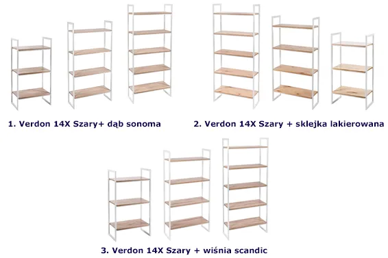 W ofercie posiadamy również minimalistyczny zestaw regałów z serii Verdon w innych wersjach kolorystycznych. Nie potrzebujesz całego zestawu? Interesują Cię tylko wybrane meble z kolekcji Verdon? A może chcesz dobrać dodatkowe meble do Twojego kompletu Maso 14X? Kliknij link sprawdź naszą ofertę. Kupując w komplecie oszczędzasz na kosztach dostawy!