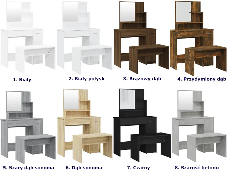 Kolory zestawu toaletka ze stołkiem Haleb 5X