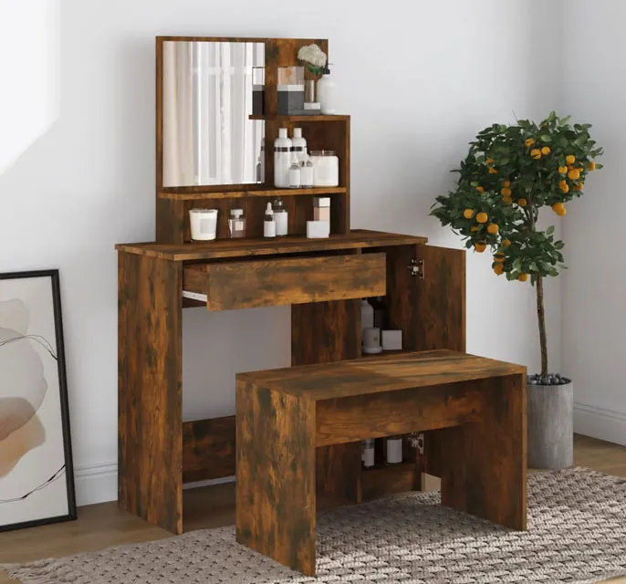 Zestaw toaletka ze stołkiem przydymiony dąb - Haleb 5X