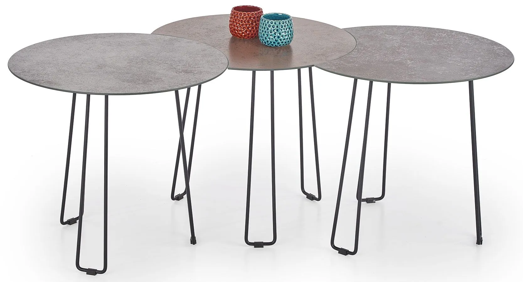 Zestaw trzech okrągłych stolików kawowych Belva