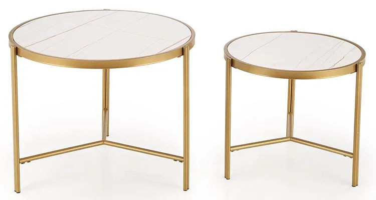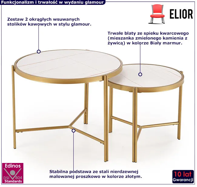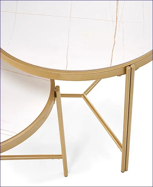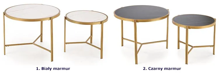 • Zjawiskowy design: Smukle, lecz stabilne złote podstawy harmonijnie kontrastują z eleganckimi, marmurowymi blatami, tworząc wyjątkowy akcent dekoracyjny w każdym wnętrzu.