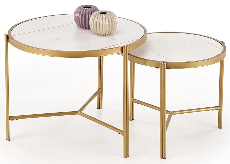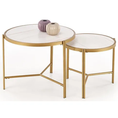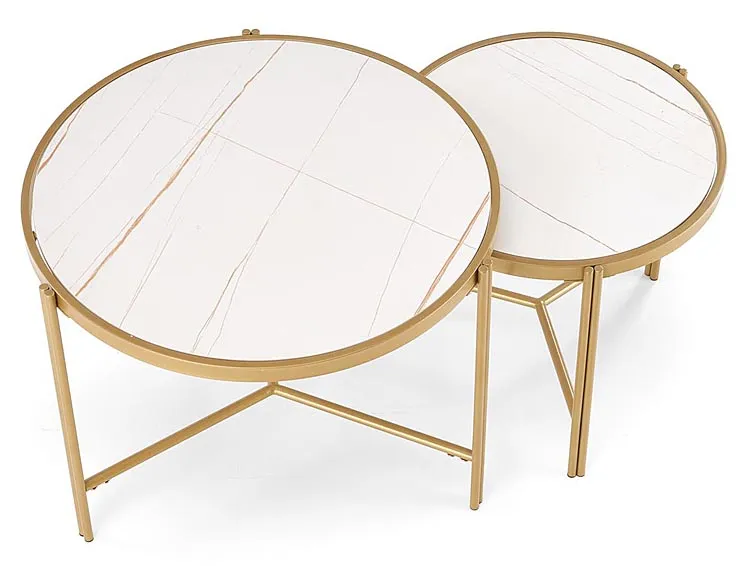 Zestaw wsuwanych stolików kawowych biały marmur - Pedrox