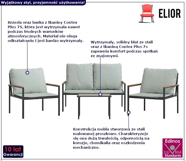 Odkryj nową definicję luksusu i komfortu z zestawem odpoczynkowym Liamis 3X marki Edinos Premium stworzonym, abyś mógł cieszyć się każdym promieniem słońca w wyjątkowej atmosferze. Zanurz się w opływającym komforcie tego czteroczęściowego zestawu, który obejmuje dwa eleganckie krzesła, stylową ławkę oraz praktyczny stolik. Przenieś swój ogród na wyższy poziom wygody i estetyki! Daj swojemu ogrodowi nową jakość życia, kreując miejsce wyjątkowe, gdzie natura łączy się z elegancją. Stwórz swoją prywatną oaze!