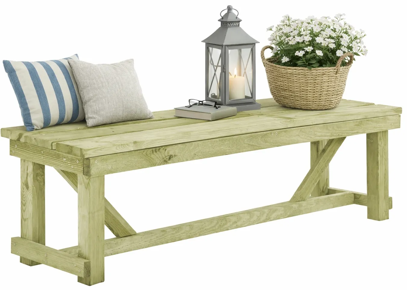 Ławka została wykonana w impregnowanym na zielono drewnie sosnowym. Użyty do produkcji surowiec jest nie tylko odporny na uszkodzenia, ale także na wpływ czynników atmosferycznych. Oznacza to, że Elmer będziesz mógł używać nawet podczas kiepskiej pogody, a sam mebel pozostawisz w swoim ogrodzie przez cały rok. Drewno sosnowe charakteryzuje również duża wytrzymałość mechaniczna. Wynika to z faktu znacznej plastyczności tego surowca. Impregnat zabezpiecza dodatkowo powierzchnię ławki przed bakteriami oraz pleśnią. Kolor produktu z kolei będzie dobrze współgrać z zielenią Twojego ogrodu, a niebanalny styl ociepli jego wizerunek, wnosząc do Twojego otoczenia coś świeżego. Uwaga! Ze względu na zastosowanie naturalnego materiału, może on wykazywać pewnie niedoskonałości.