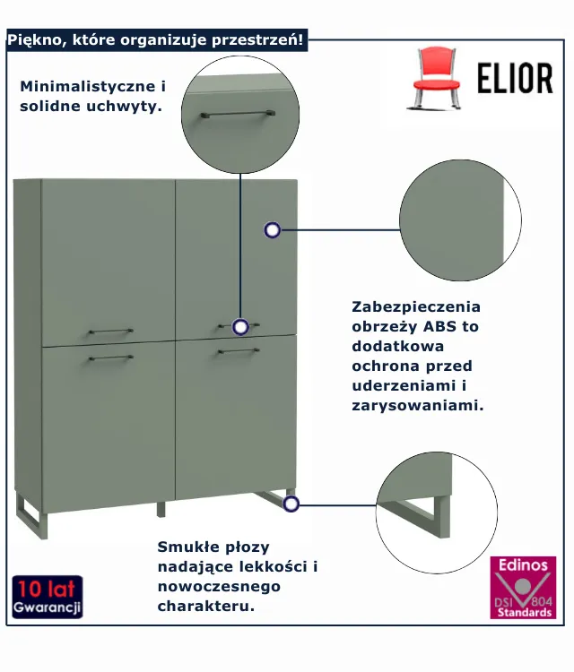 Dotyczy: Szałwiowa nowoczesna komoda na nóżkach - Alwa 3X