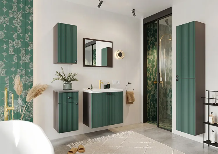 Zielona ścienna szafka pod umywalkę z lamelami - Nepal 4X