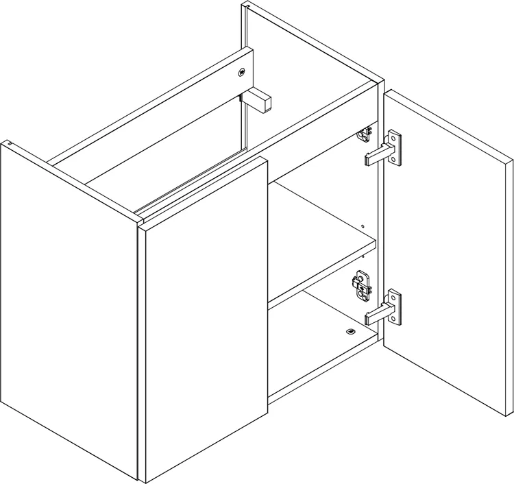 • Materiał: korpus: 16 mm laminowana płyta o klasie higieny E1, front: 19 mm foliowana płyta MDF.