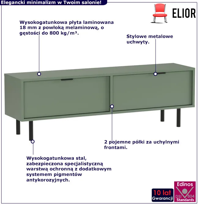 Zielona stojąca szafka RTV szałwia - Inao 3X