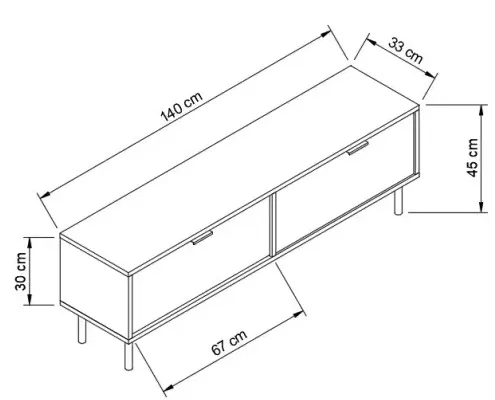 • szerokość: 140 cm, głębokość: 33 cm, wysokość: 45 cm