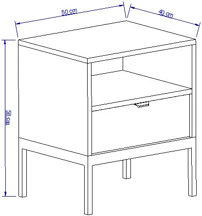 • szerokość: 50 cm, głębokość: 40 cm, wysokość: 58 cm