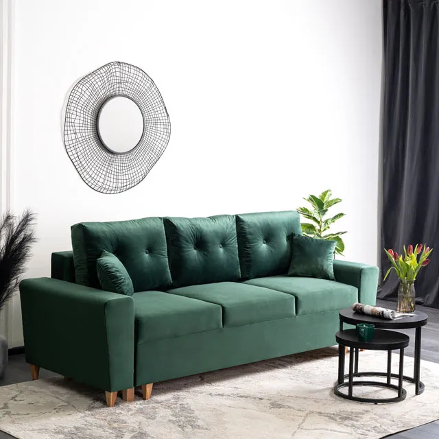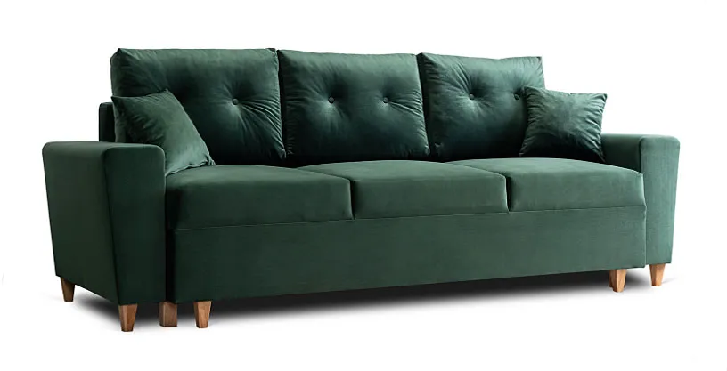 Zielona trzyosobowa sofa do salonu z funkcja rozkładania Kanoni